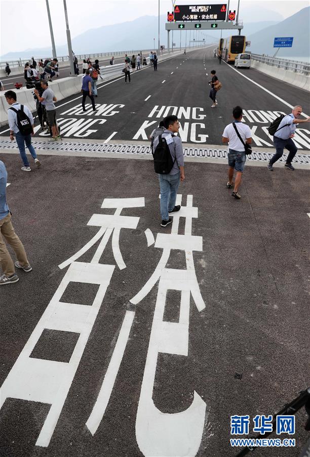 10月19日,媒體記者在港珠澳大橋香港連接路部分參觀。 港珠澳大橋開(kāi)通在即。 新華社記者 李鋼 攝