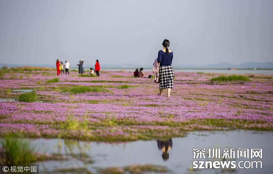 深圳新聞網(wǎng)訊 2018年10月23日,南昌,游人在江西鄱陽(yáng)湖都昌濕地蓼子花海內(nèi)游玩。連日來(lái),中國(guó)第一大淡水湖江西鄱陽(yáng)湖濕地大面積蓼子花開放,秋景宜人,紫色的花海吸引大批游客前來(lái)賞景游玩。