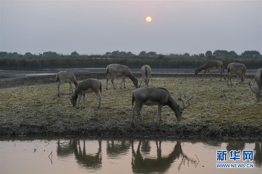 10月24日,生活在杭州灣國家濕地公園水禽棲息區(qū)的麋鹿在覓食。 時值深秋,位于浙江寧波的杭州灣國家濕地公園在落日余暉下呈現(xiàn)出一幅美麗的畫卷。 新華社記者 黃宗治 攝