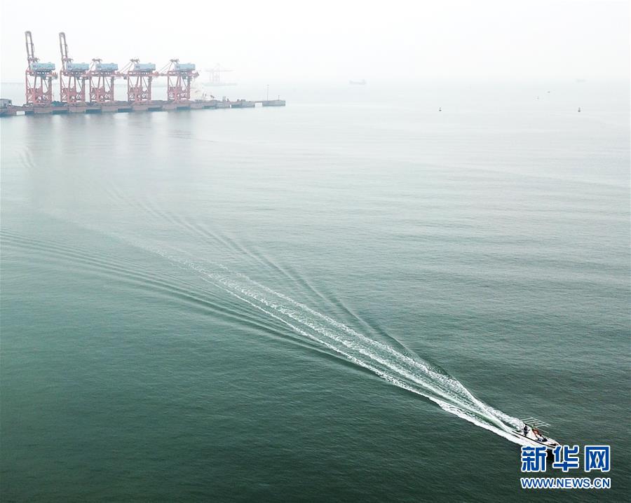 10月24日,一艘運(yùn)輸貨物的快艇行駛在廣西防城港碼頭海域(無人機(jī)拍攝)。 新華社記者 魏海 攝