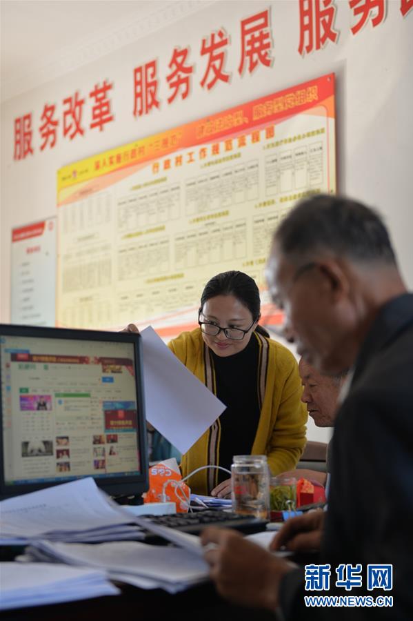 開(kāi)弦弓村婦女主任周春燕(左一)在村部和同事們一起處理村務(wù)(10月23日攝)。“80后”周春燕是土生土長(zhǎng)的開(kāi)弦弓村村民,大學(xué)畢業(yè)后回村工作,每天活躍在村里的大街小巷。  新華社記者 尹棟遜攝