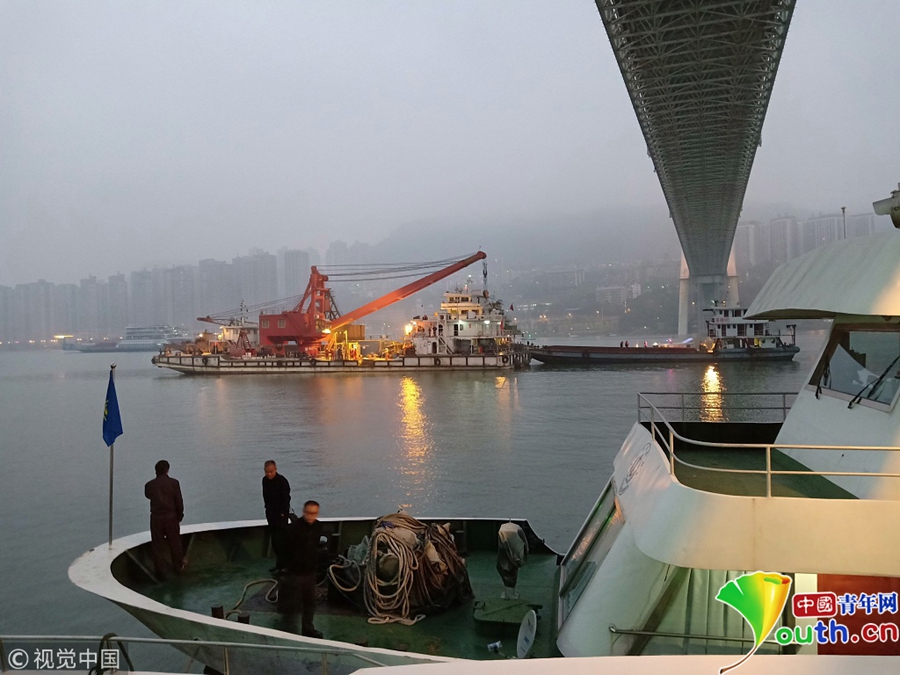 2018年10月30日,重慶,救援現(xiàn)場。10月28日上午10時(shí)8分,一輛公交車在重慶市萬州區(qū)長江二橋墜入江中。目前打撈工作有何進(jìn)展?記者采訪了交通運(yùn)輸部上海打撈局救撈工程船隊(duì)隊(duì)長周東榮。
