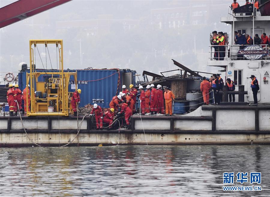 重慶萬州墜江公交車打撈深潛設(shè)備到位 潛水員正下潛勘測