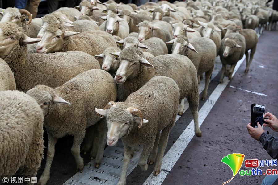成百上千只綿羊穿越馬德里市街,展示古老的游牧習(xí)俗。
