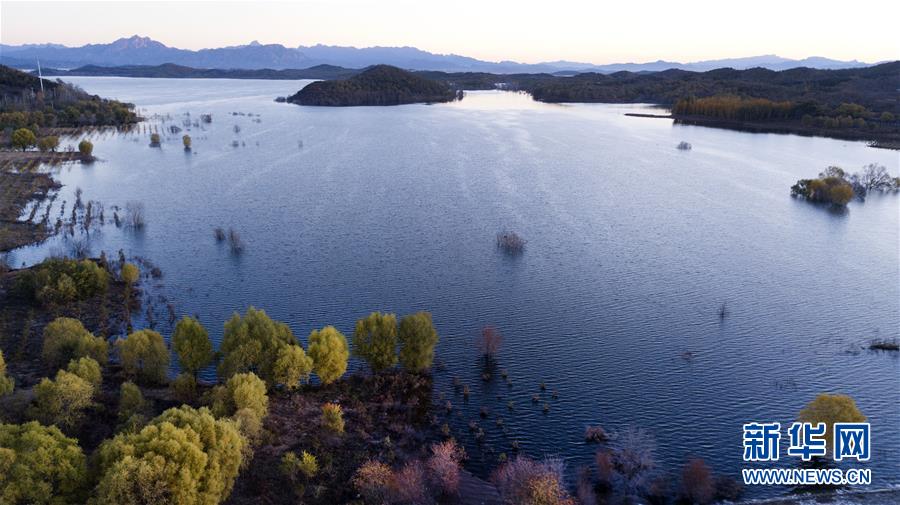金秋時(shí)節(jié),北京密云水庫沿岸樹林逐漸變黃,山水相映,恬淡寧靜。 新華社記者陶明攝
