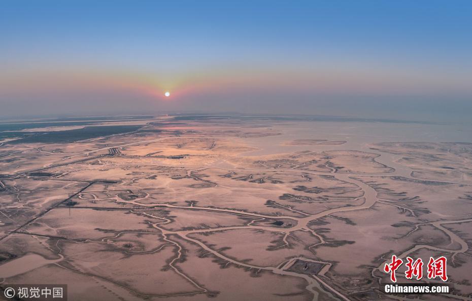 10月3日,山東東營(yíng),航拍黃河三角洲國(guó)家級(jí)自然保護(hù)區(qū)內(nèi)壯觀的河流脈絡(luò)。圖片來(lái)源:視覺中國(guó)