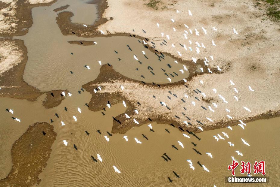 10月4日,在江西鄱陽(yáng)湖都昌馬影湖水域拍攝的白鷺。金秋十月,生活在江西鄱陽(yáng)湖區(qū)的白鷺沐浴秋色,濕地上成群的白鷺成為一道靚麗的風(fēng)景。中新社發(fā) 傅建斌 攝