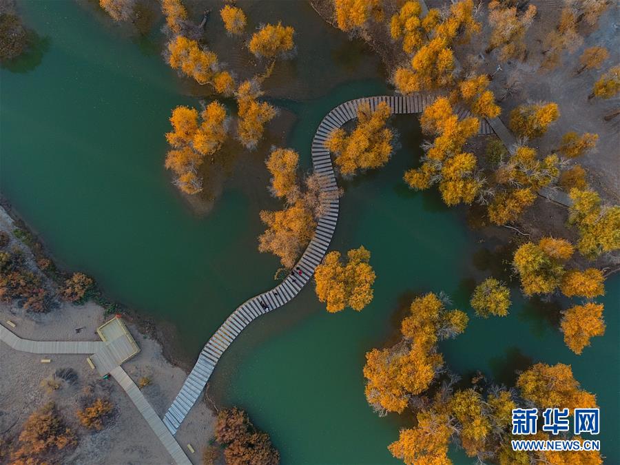 新疆尉犁縣胡楊林深處的一條小路(10月25日攝)。 10月中下旬,靜靜的塔里木河中下游一片金黃。胡楊深處,條條小路蜿蜒綿長(zhǎng)通向遠(yuǎn)方,引人入勝。 塔里木河是中國(guó)最長(zhǎng)的內(nèi)陸河,這一區(qū)域原始胡楊林分布較為集中。隨著塔里木河連續(xù)19次向下游生態(tài)輸水,為胡楊林“解渴”,塔河兩岸生態(tài)得到明顯改善,沙地面積逐年減少。 新華社記者趙戈攝