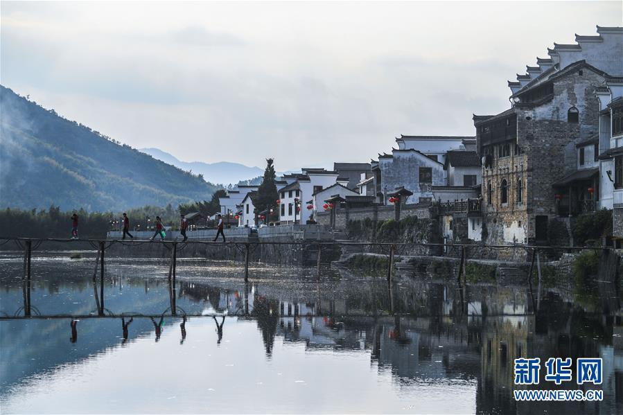 2018年10月17日,游客從河橋鎮(zhèn)一木橋上走過。浙江省杭州市臨安區(qū)河橋鎮(zhèn)擁有1300多年的歷史,鎮(zhèn)范圍內至今仍保留著100多幢古建筑。2018年2月,河橋鎮(zhèn)成功創(chuàng)建浙江省小城鎮(zhèn)環(huán)境綜合整治樣板鎮(zhèn)。