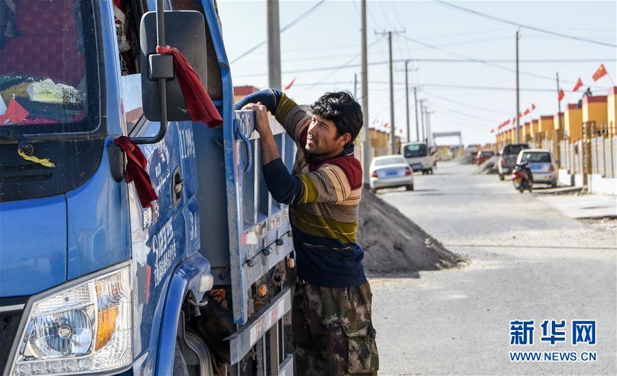 10月28日,買合肉甫·木拉吧在小兒子的幫助下裝運(yùn)貨物。 新華社記者 關(guān)俏俏 攝