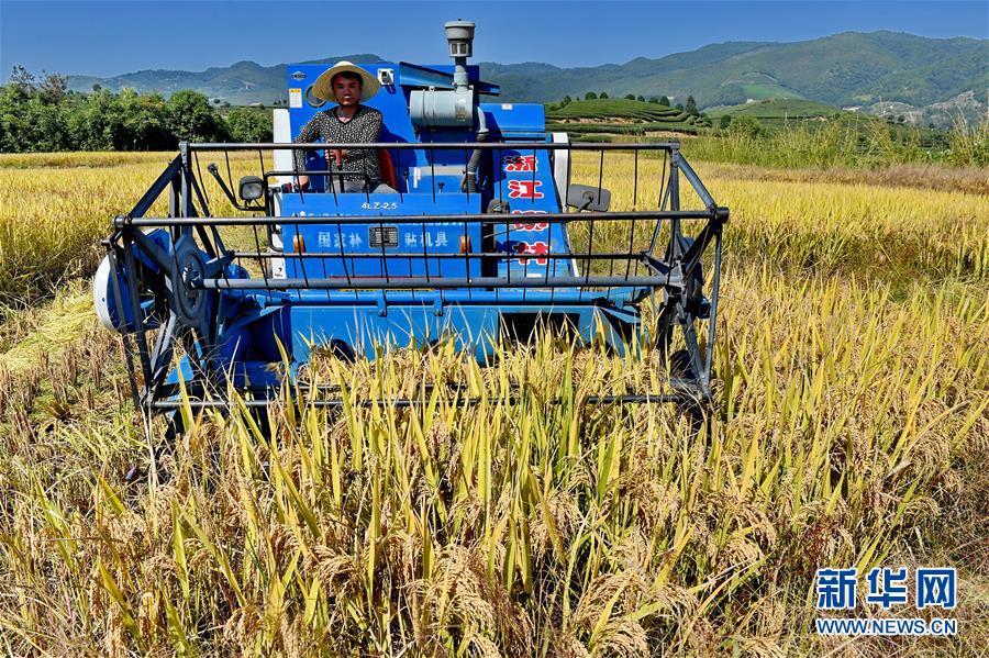 10月31日,武夷山市興田鎮(zhèn)南岸村農(nóng)民在田間收割稻谷。 新華社記者 張國(guó)俊 攝