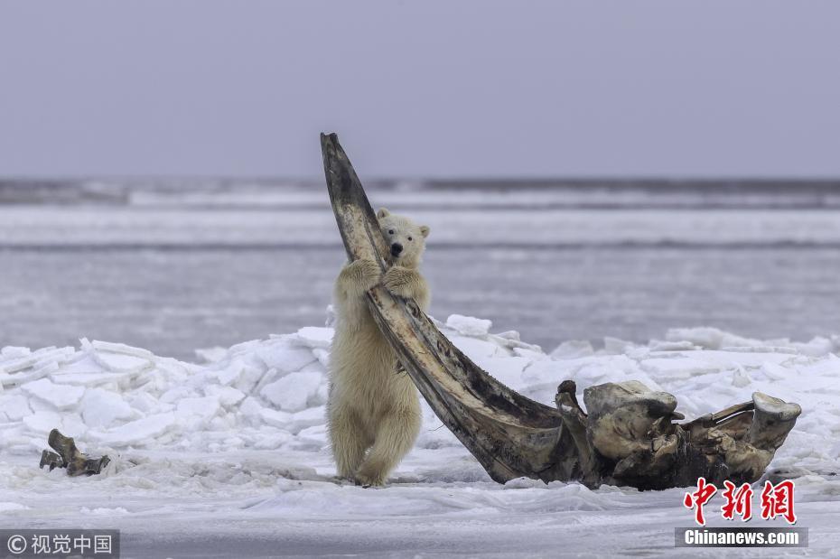 11月1日訊(具體拍攝時間不詳),美國阿拉斯加州,一只北極熊媽媽帶著幼崽們外出覓食,發(fā)現(xiàn)了一節(jié)長4.5米的北極露脊鯨骸骨。75噸重的鯨魚對因紐皮亞特人來說是神圣的,他們每年要吃三次鯨魚,把骨頭放在指定的地方,讓北極熊吃完粘在骨頭上的碎肉。攝影師Eiji Itoyama為拍攝此照片在位于北冰洋邊緣的阿拉斯加卡克托維克村停留了5天。圖片來源:視覺中國