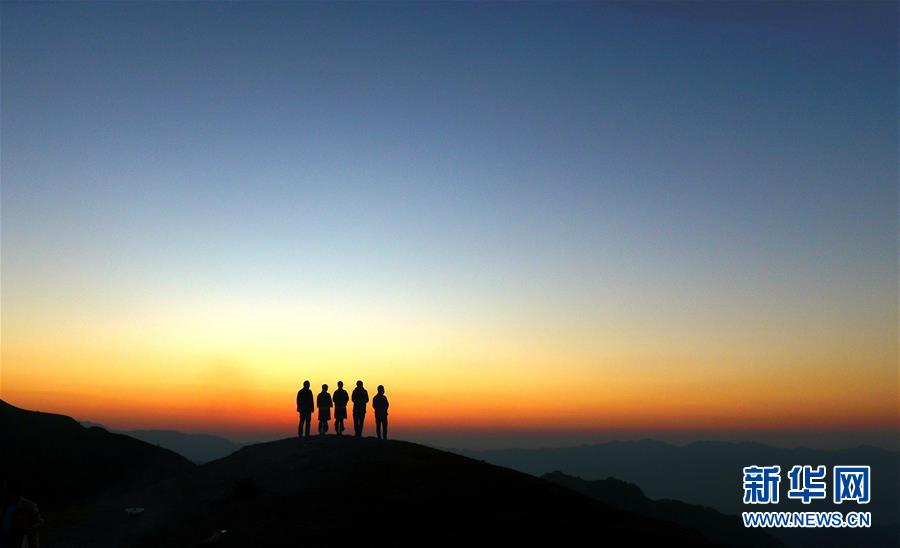 11月2日,游客在摩天嶺草場欣賞夕陽景色(無人機拍攝)。金秋時節(jié),廣西融水苗族自治縣桿洞鄉(xiāng)堯告村的摩天嶺草場天高云淡,景色迷人。新華社記者周華攝