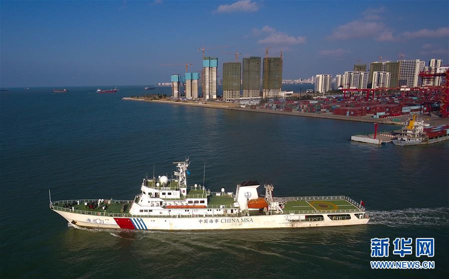 11月3日,“海巡21”輪駛出港口。當(dāng)日,隨著“海巡21”輪緩緩駛離海口海事監(jiān)管基地碼頭,由瓊桂粵海事部門共同開展的瓊州海峽、北部灣及環(huán)海南島水域跨轄區(qū)聯(lián)合巡航執(zhí)法活動揭開序幕。新華社記者楊冠宇攝