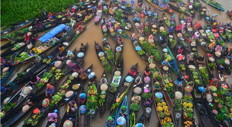 富有煙火氣息的印尼水上集市 商販用 ...