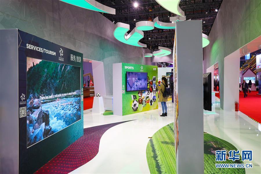11月5日,一位女士在巴基斯坦展館內(nèi)參觀。 新華社記者 劉大偉 攝