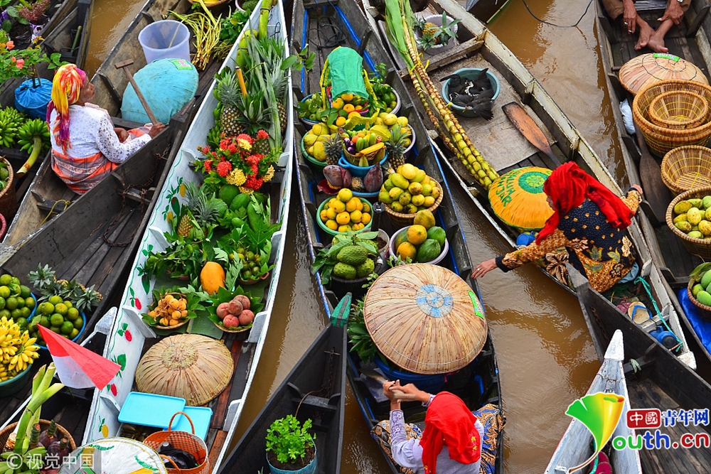 2018年11月5日訊(具體拍攝時(shí)間不詳),印度尼西亞班加爾地區(qū),專業(yè)攝影師Saipullah拍攝的洛克班坦(Lok Baintan)水上集市。 圖片來(lái)源:視覺中國(guó)