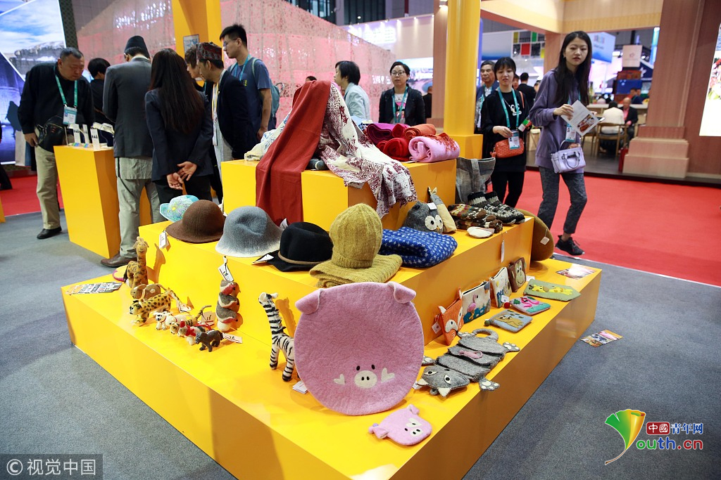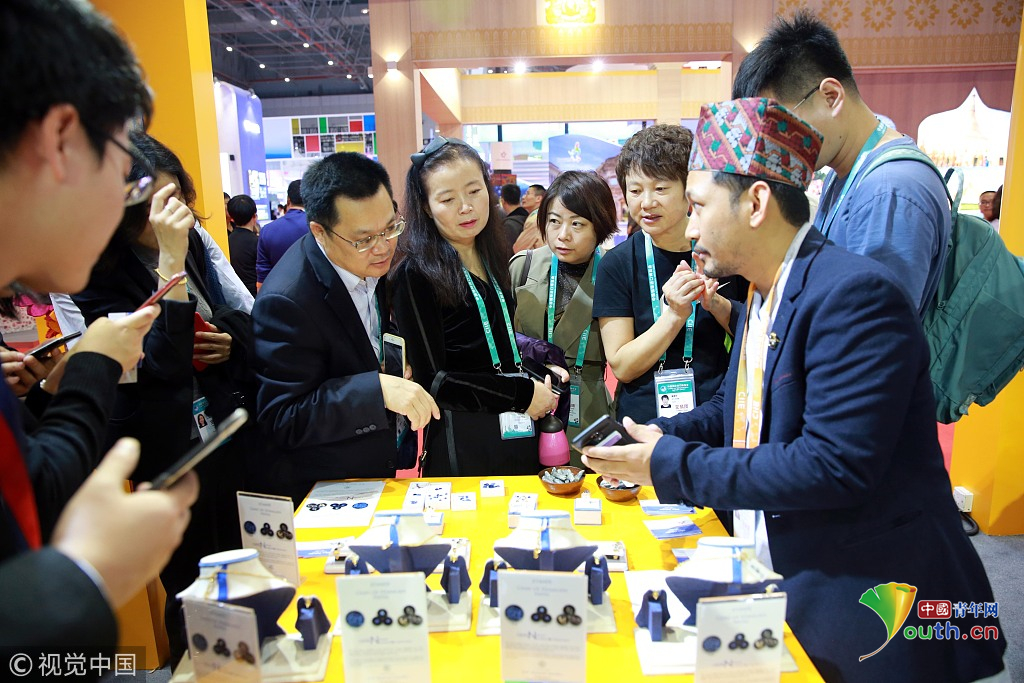 2018年11月6日,上海,首屆中國(guó)國(guó)際進(jìn)口博覽會(huì)國(guó)家展上,共有82個(gè)國(guó)家、3個(gè)國(guó)際組織設(shè)立了71個(gè)展臺(tái)。尼泊爾館。視覺中國(guó)
