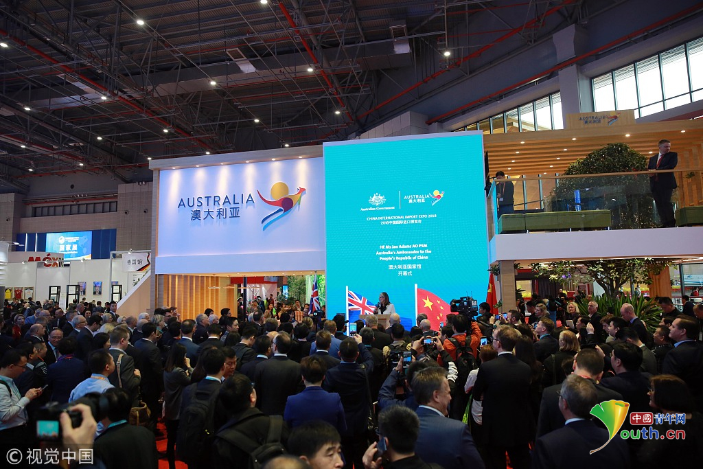 2018年11月6日,上海,首屆中國(guó)國(guó)際進(jìn)口博覽會(huì)國(guó)家展上,共有82個(gè)國(guó)家、3個(gè)國(guó)際組織設(shè)立了71個(gè)展臺(tái)。澳大利亞館新產(chǎn)品、新技術(shù)發(fā)布。視覺中國(guó)
