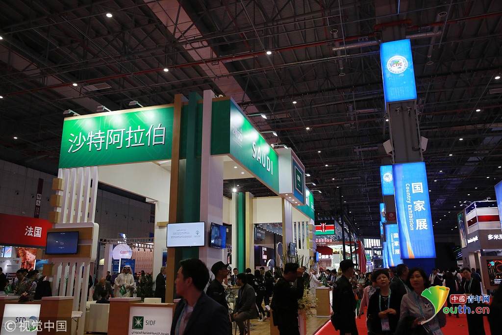 2018年11月6日,上海,首屆中國(guó)國(guó)際進(jìn)口博覽會(huì)國(guó)家展上,共有82個(gè)國(guó)家、3個(gè)國(guó)際組織設(shè)立了71個(gè)展臺(tái)。沙特阿拉伯館。視覺中國(guó)