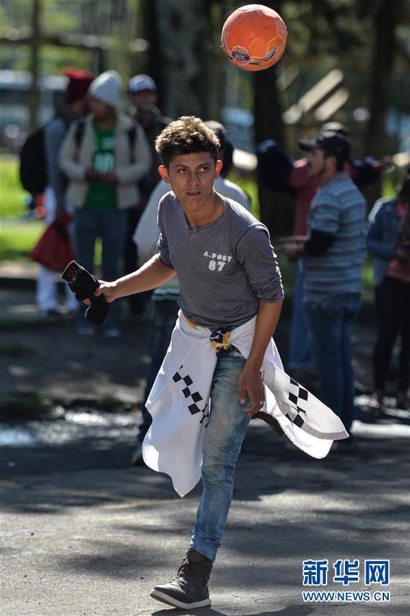 11月5日,在墨西哥首都墨西哥城,一名中美洲移民在臨時安置點踢足球。 新華社記者辛悅衛(wèi) 攝