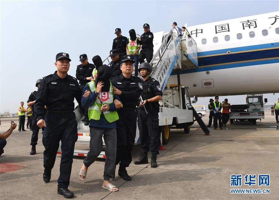 當日,一架從菲律賓起飛的中國民航包機抵達深圳寶安機場,36名利用網(wǎng)絡刷單實施電信網(wǎng)絡詐騙的犯罪嫌疑人被集中押解回國。涉及全國多個?。▍^(qū)、市)的700余起電信網(wǎng)絡詐騙案宣布告破,涉案金額1800余萬元。 新華社記者毛思倩攝