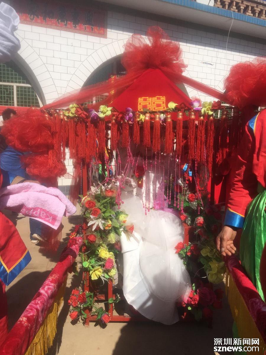 出了村口,新娘就下轎子改乘汽車走了。轎夫、轎子和毛驢也有專門的車載走。