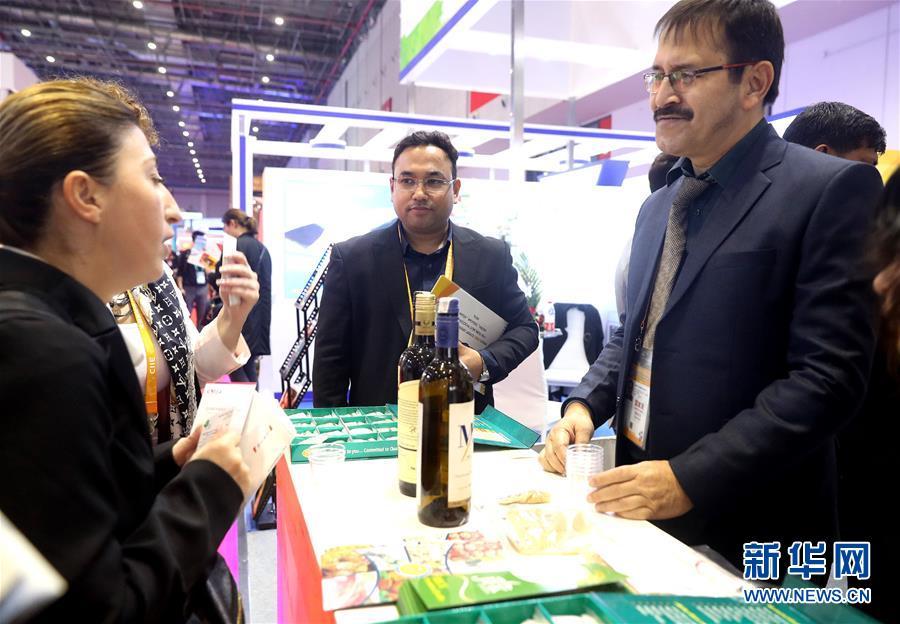 11月7日,人們在尼泊爾展區(qū)參觀。 中國國際進口博覽會11月5日在上海開幕。國家貿(mào)易投資綜合展(國家展)是中國國際進口博覽會的重要內(nèi)容,共有82個國家、3個國際組織設立71個展臺。 新華社記者 陳飛 攝