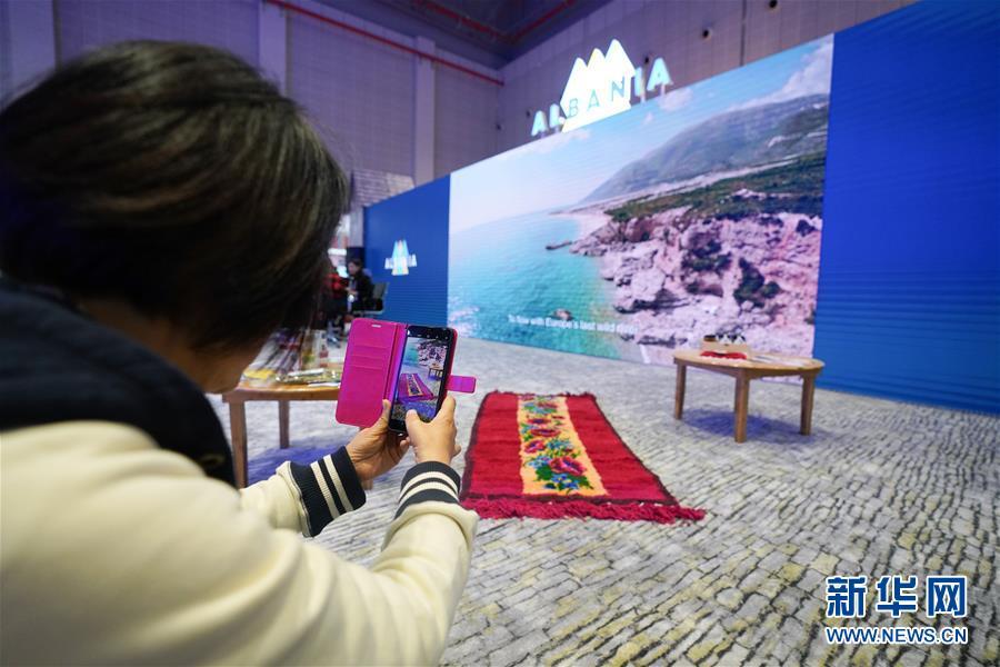 11月7日,在阿爾巴尼亞展區(qū),一名參觀者拍攝當?shù)厣a(chǎn)的地毯。 中國國際進口博覽會11月5日在上海開幕。國家貿(mào)易投資綜合展(國家展)是中國國際進口博覽會的重要內(nèi)容,共有82個國家、3個國際組織設立71個展臺。 新華社記者 王天聰 攝