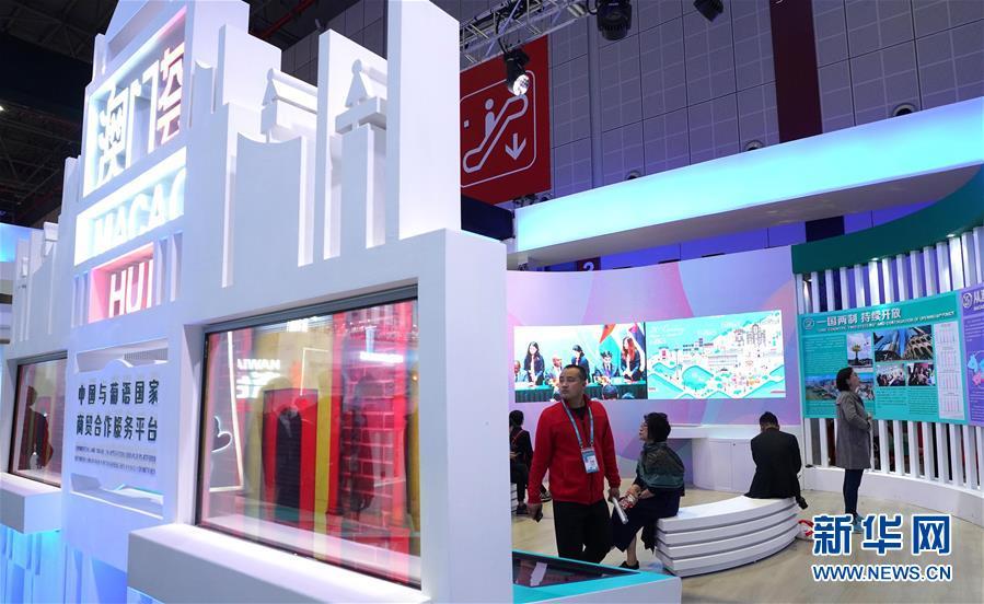 11月8日,人們?cè)谥袊?guó)館澳門展區(qū)參觀。 中國(guó)國(guó)際進(jìn)口博覽會(huì)11月5日在上海開(kāi)幕。國(guó)家貿(mào)易投資綜合展(國(guó)家展)是中國(guó)國(guó)際進(jìn)口博覽會(huì)的重要內(nèi)容,共有82個(gè)國(guó)家、3個(gè)國(guó)際組織設(shè)立71個(gè)展臺(tái)。 新華社記者 程麗 攝