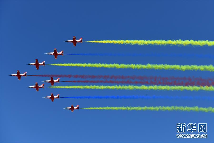 11月6日,中國空軍八一飛行表演隊在航展現(xiàn)場進(jìn)行飛行表演。當(dāng)日,第十二屆中國國際航空航天博覽會在珠海開幕。 新華社記者楊光攝