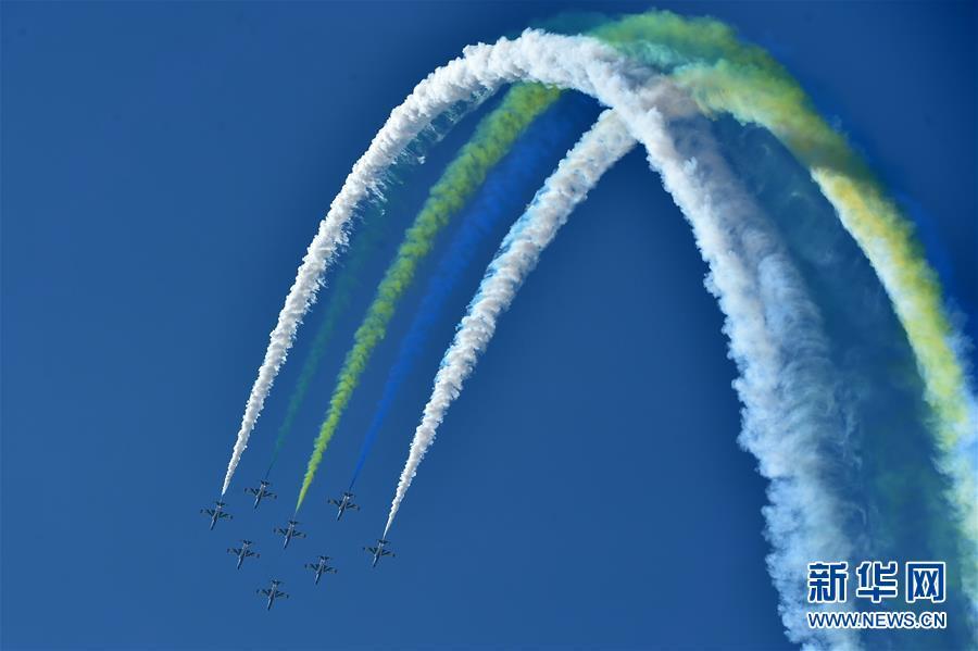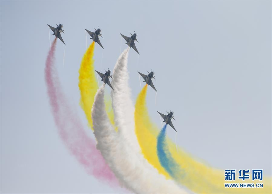11月6日,中國空軍八一飛行表演隊在航展現(xiàn)場進(jìn)行飛行表演。當(dāng)日,第十二屆中國國際航空航天博覽會在珠海開幕。 新華社記者鄧華攝