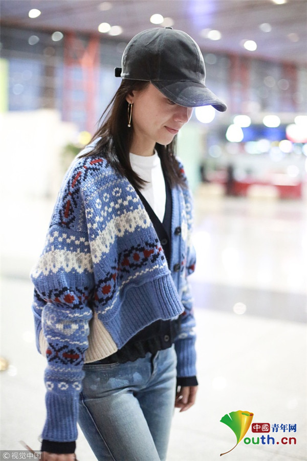 董潔素面朝天現(xiàn)機(jī)場(chǎng)