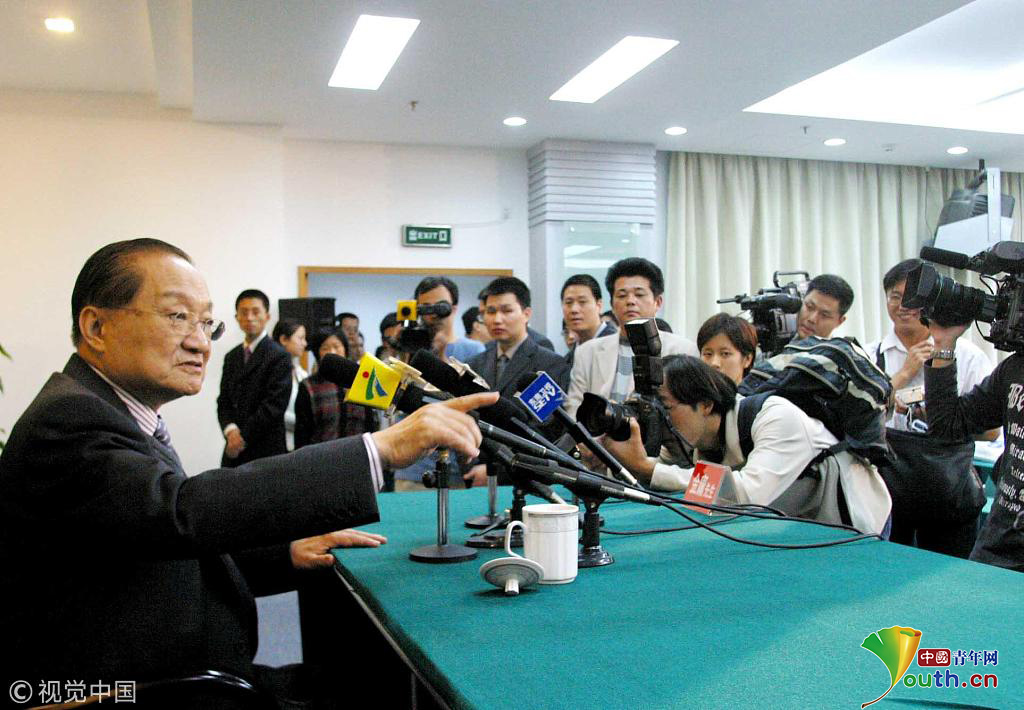 2003年11月15日抵達(dá)廣州,16日和17日分別參加羊城書市系列活動(dòng),并擔(dān)任廣州論壇之“21世紀(jì)出版?zhèn)髅胶臀幕l(fā)展論壇”的主講嘉賓和羊城書迷面對(duì)面等活動(dòng)?,F(xiàn)已79歲高齡的“金大俠”現(xiàn)身廣州,書迷們又引發(fā)了新一股“金庸熱”。圖片作者:寧彪