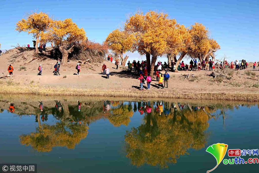 中國青年網(wǎng)北京10月9日電 2018年10月7日至8日,內(nèi)蒙古自治區(qū)阿拉善盟額濟(jì)納旗,地處巴丹吉林沙漠。額濟(jì)納河兩岸壯觀的胡楊林堪稱大漠的一顆綠色明珠,每年深秋時(shí)節(jié)的第一場秋霜過后,大片的胡楊樹葉由綠變黃,一眼望去,陽光下金色的樹葉襯著湛藍(lán)的天空于風(fēng)中婆娑起舞,鮮明的影調(diào),亮麗的色彩,令人流連忘返。