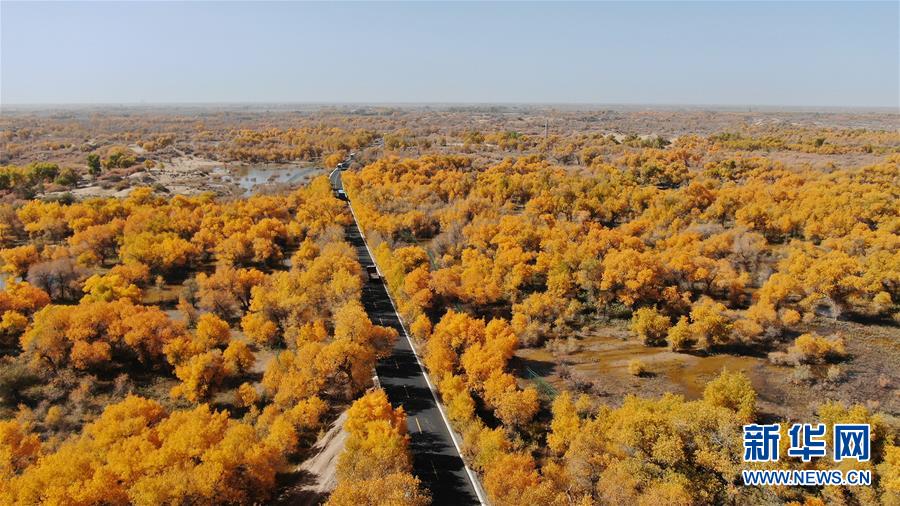 新疆輪臺縣胡楊林深處的一條小路(10月25日攝)。 10月中下旬,靜靜的塔里木河中下游一片金黃。胡楊深處,條條小路蜿蜒綿長通向遠(yuǎn)方,引人入勝。 塔里木河是中國最長的內(nèi)陸河,這一區(qū)域原始胡楊林分布較為集中。隨著塔里木河連續(xù)19次向下游生態(tài)輸水,為胡楊林“解渴”,塔河兩岸生態(tài)得到明顯改善,沙地面積逐年減少。 新華社記者趙戈攝