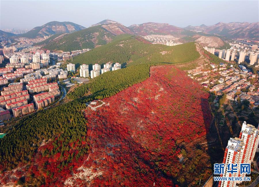 這是“一山雙色”的山東濟(jì)南楔子山(10月31日無(wú)人機(jī)拍攝)。 新華社記者朱崢攝