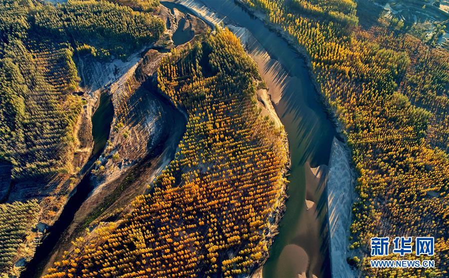 深秋時節(jié),流經(jīng)河北省樂亭縣的灤河兩岸色彩斑斕,宛如畫境。