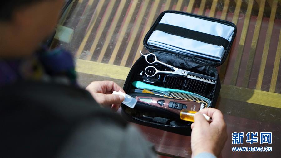 11月13日,鄒勤敏在家中準備理發(fā)用的工具。