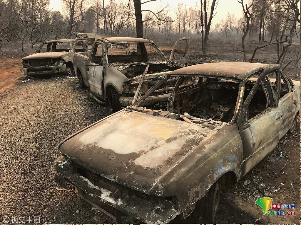 聲明說,警方調(diào)查人員自8日起接到多起報(bào)告說山火在天堂鎮(zhèn)造成人員死亡,但由于火勢猛烈,調(diào)查工作難以展開。目前,調(diào)查人員已在天堂鎮(zhèn)一輛被燒毀的汽車中發(fā)現(xiàn)5名死者,確定死因是在乘車逃離過程中被山火吞噬。