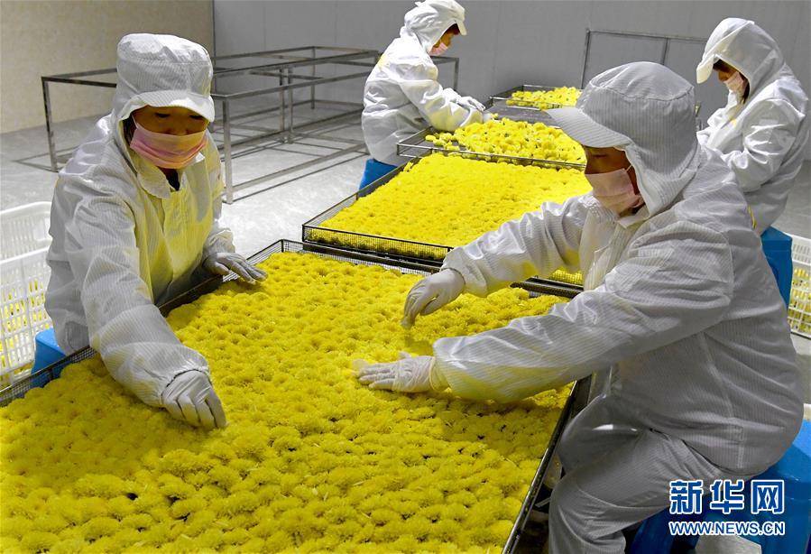 11月14日,河南省內(nèi)鄉(xiāng)縣乍曲鎮(zhèn)水溝村一家菊花茶加工企業(yè)工人在挑揀菊花。 近年來,河南省內(nèi)鄉(xiāng)縣依托資源優(yōu)勢,把發(fā)展特色農(nóng)業(yè)作為精準(zhǔn)扶貧的重要舉措,采取“公司+合作社+農(nóng)戶”的方式,招引農(nóng)業(yè)龍頭企業(yè)發(fā)展菊花種植產(chǎn)業(yè),把菊花加工成茶飲、藥材等高附加值產(chǎn)品,累計帶動150余戶貧困戶就業(yè)增收。 新華社記者 李安 攝