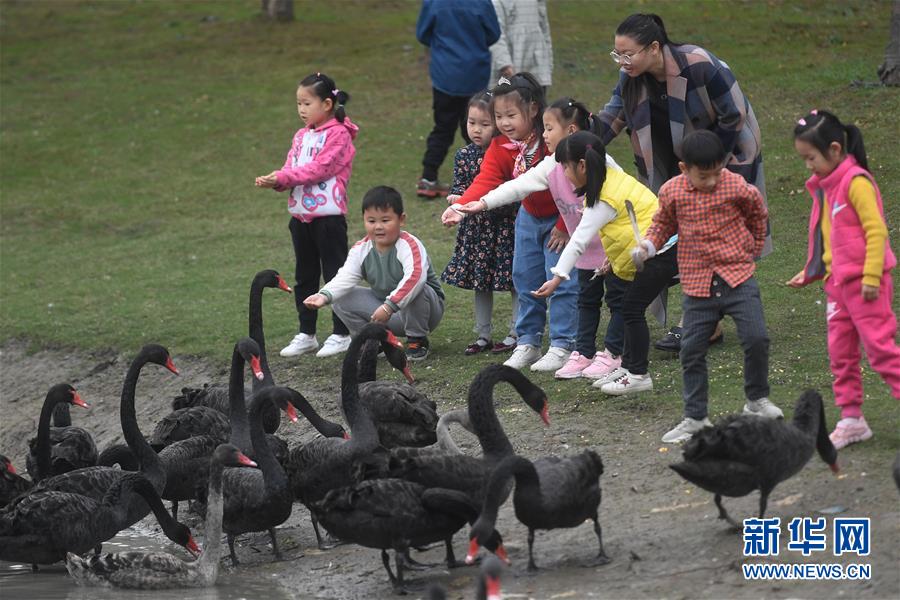 11月14日,湖州市吳興區(qū)八里店農(nóng)民社區(qū)的小朋友在公園給黑天鵝喂食。 浙江省湖州市吳興區(qū)八里店農(nóng)民社區(qū)目前安置居民近4萬人,整個區(qū)域內(nèi)公共設(shè)施配套齊全,路網(wǎng)交通便捷順暢,綠化生態(tài)自然和諧,社區(qū)活動豐富多彩。 新華社記者 黃宗治 攝
