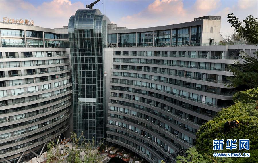 一名工人(右下)在位于酒店頂樓附近的崖壁上施工(11月13日攝)。 位于上海松江的世茂洲際酒店11月15日正式開門營業(yè)。這家在一個廢棄采石礦坑內(nèi)建成的酒店成為上海又一新景。 新華社記者 方喆 攝