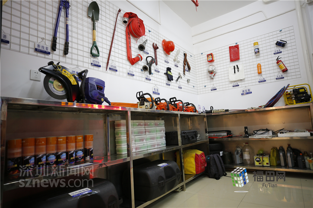 水圍消防體驗(yàn)館擺放的各類消防器材。