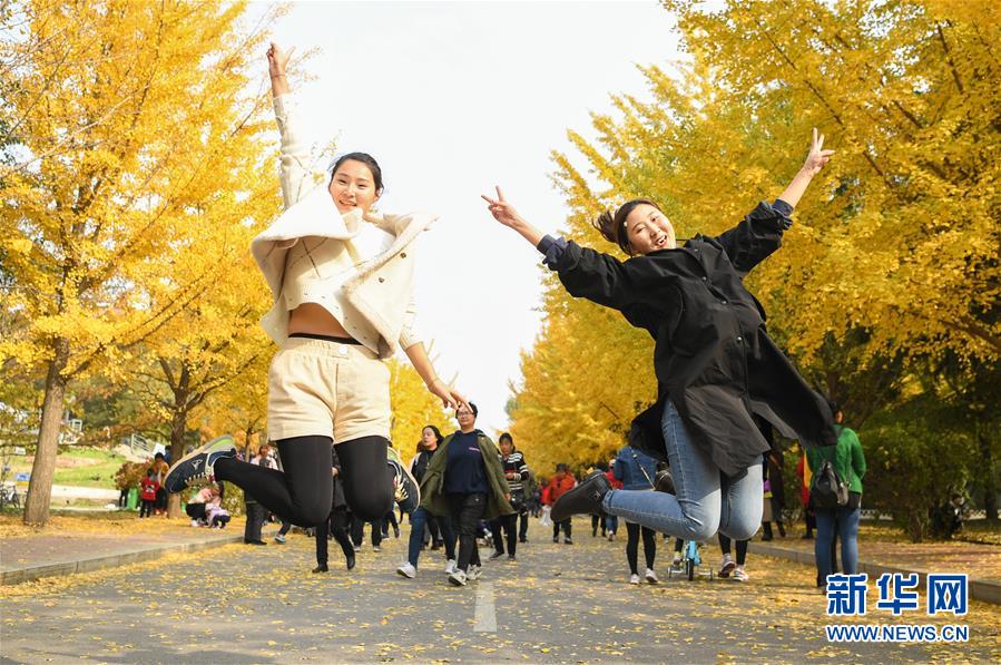 近日,沈陽農(nóng)業(yè)大學(xué)內(nèi)的銀杏樹進(jìn)入最佳觀賞期,長達(dá)一千余米的金色“銀杏路”吸引了許多市民前去游覽,拍照。 新華社記者龍雷攝