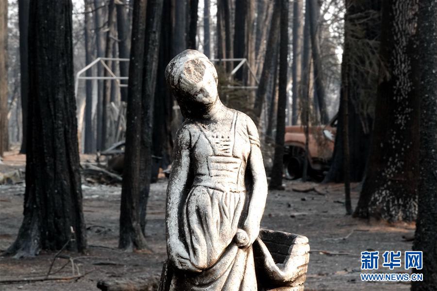 這是11月19日在美國加利福尼亞州比尤特縣天堂鎮(zhèn)拍攝的山火廢墟。新華社記者吳曉凌攝