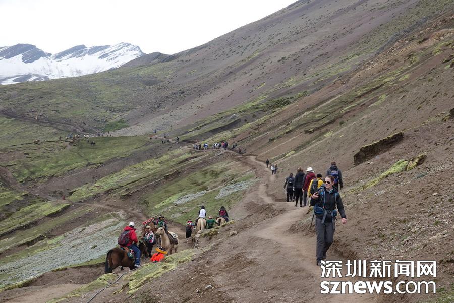 深圳新聞網(wǎng)訊   彩虹山被當(dāng)?shù)厝朔Q為維昆尼卡。深藏于秘魯庫(kù)斯科古城附近的安第斯山脈之中,多年來它一直隱藏在冰雪之下,據(jù)說是因?yàn)闇厥倚?yīng),雪線升高露出真容,才于2016年被發(fā)現(xiàn),并迅速成為世界知名景點(diǎn)。這里可以觀賞到的還有冰川、高山草甸、羊駝以及當(dāng)?shù)厣贁?shù)民族的風(fēng)情。李仁奇攝
