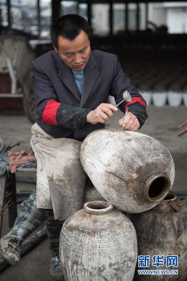 11月21日,一名鋦匠在紹興女兒紅釀酒有限公司修補(bǔ)黃酒壇。 浙江紹興一帶有“生女釀好酒、婚嫁宴賓客”的習(xí)俗,所釀之酒稱“女兒紅”。在紹興市上虞區(qū)東關(guān)街道,一家釀酒廠仍保留著傳統(tǒng)的黃酒生產(chǎn)線,恪守著近20道釀造工序,延續(xù)著傳統(tǒng)黃酒的釀制技藝和生女必釀“女兒紅”的文化習(xí)俗。 黃酒是中國(guó)最古老的酒種之一,傳統(tǒng)黃酒僅在冬季取鑒湖水和糯米釀制,所得之酒澄澈馥郁。 新華社記者翁忻旸攝