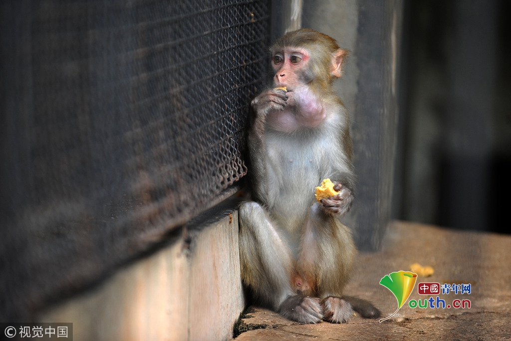 2016年9月15日,武漢動物園,獼猴品嘗特制月餅。