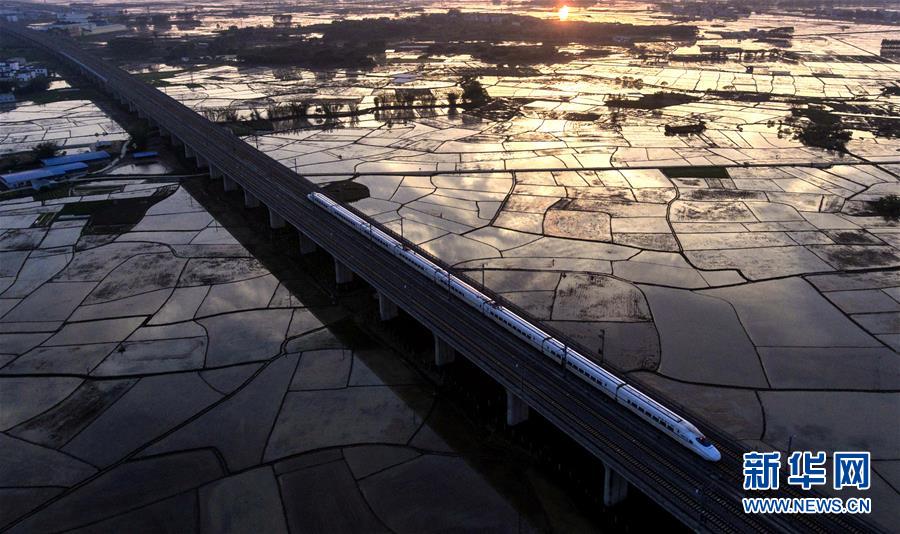 動車在廣西賓陽縣的田野上行駛(2017年4月1日無人機拍攝)。 廣西壯族自治區(qū)成立60年來,鐵路建設發(fā)生翻天覆地的變化。來自中國鐵路南寧局集團有限公司的數(shù)據(jù)顯示,1958年廣西鐵路總里程為1346.3公里,如今廣西鐵路總里程達5191公里。廣西與周邊相鄰省份間實現(xiàn)動車“公交化”開行。此外,北部灣港—重慶班列、東盟海產(chǎn)品冷鏈班列、“百色一號”果蔬專列等的開通和運營,強化了鐵路供給的針對性和有效性。鐵路成為助推廣西經(jīng)濟社會快速發(fā)展的“大動脈”。 新華社記者黃孝邦攝